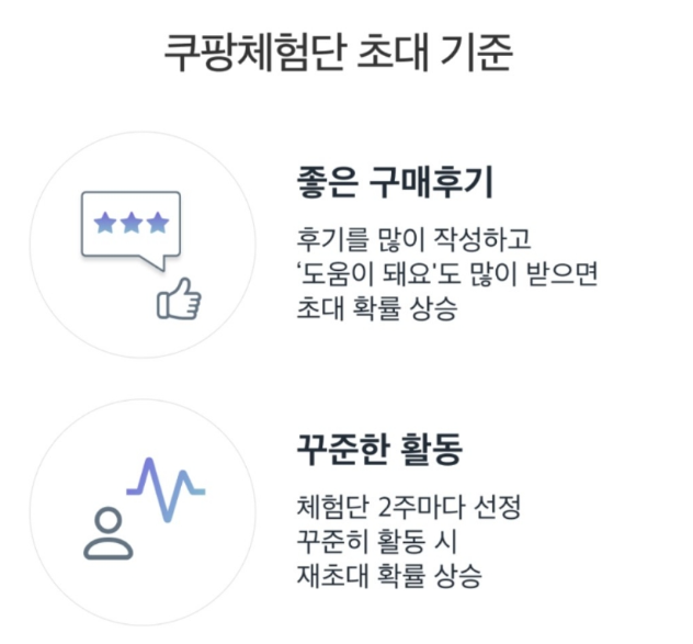 이러한 과정을 통해 쿠팡은 활발한 활동을 보이는 회원을 대상으로 체험단 초대를 진행합니다.