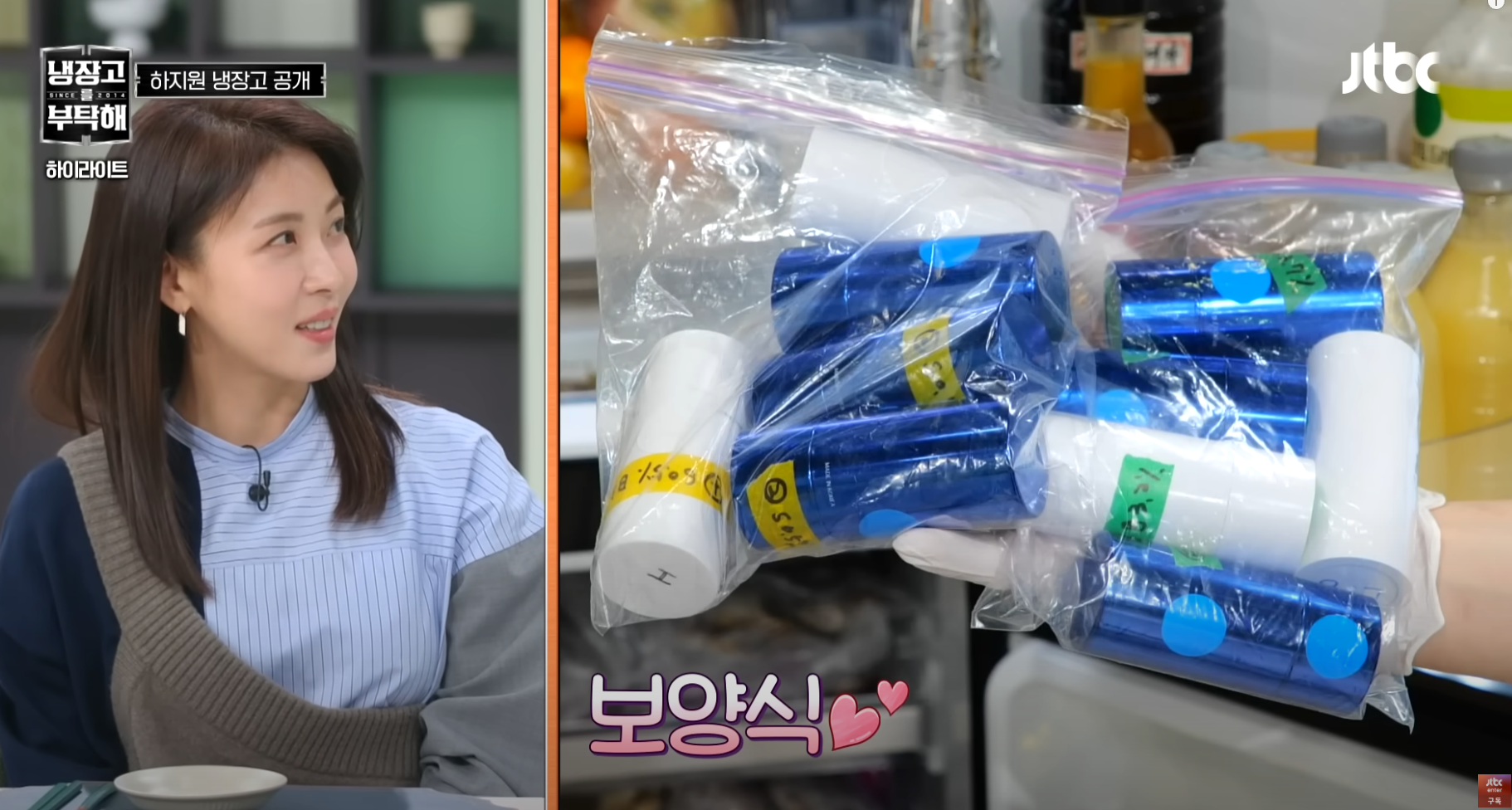 냉장고 속에서 등장한 파우치24 퀸즈밤은 하지원이 오랫동안 사용하고 실제로 론칭한 브랜드의 대표 제품입니다.